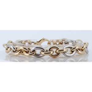 14Kt Two Tone Yellow/White Gold Semi-Hollow Link Bracelet With Alternating Yellow-White Links, Finished With A Robust Fancy Lobster Lock That Is Easy To Operate. It Weighs 11.1 Grams, Made In Italy.