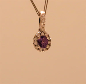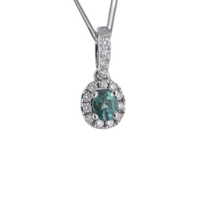 Exuding An Irresistible Natural Alexandrite, This 18Kt White Gold Alexandrite Round Shape Pendant Is A Visual Delight. A Halo Of Glistening Diamonds Outlines The Claw Prong Set Gem. The Diamond Studded Bale And The Scrollwork Detailing On The Sides Add To The Overall Beauty Of This Pear-Shaped Alexandrite Pendant. The Alexandrite's Color Change Is Described Bluish-Green In Daylight Changing To Purple In Incandescent Light, Alexandrite's Are Priced For Their Ability To Change Color Naturally. Crafted In 18Kt White Gold The Round Alexandrite Weighs 0.16 Carat With 0.08 Carats Of Surrounding Round Diamonds That Are Graded As G-H Color With Vs Clarity.