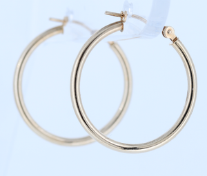 14K Yellow Gold High Polish Gold Hoop Earrings With Snap Bar Lock. 0.7 Grams And Made In Italy