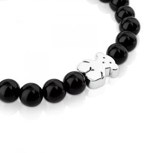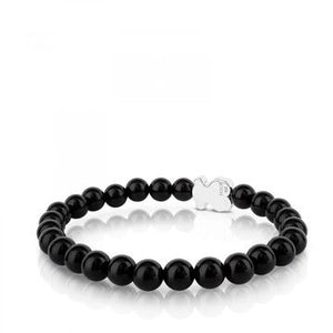 TOUS Sweet Dolls elastic bracelet in sterling silver with 0.6 cm onyx balls.
