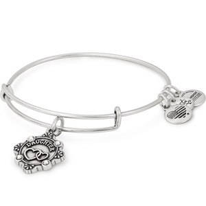 Daughters bring light, life, and new possibility into the world. Perfectly capturing the ever enduring bond between parent and child are the interlocking hearts displayed at the center of the Alex and Ani daughter charm. Four sparkling crystals accent the charm and add an elegant design element to the piece. Gift or wear this Alex and Ani Daughter charm bangle to show your appreciation and love for your daughter.