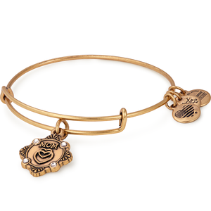 There are no limits to a mother's love and support of her child. Perfectly capturing these maternal traits of love, healing, and bravery are the interlocking hearts displayed at the center of the Alex and Ani mom charm. Four sparkling crystals accent the charm and add an elegant design element to the piece. Shower the special woman in your life with all the strength, respect, and adoration that she deserves with this Alex and Ani Mom Charm Bangle.