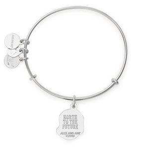 This Alex and Ani expandable wire bangle can be worn on its own or stacked with other bangles that have important meaning to your life. Crafted in Shiny Silver Finish, this bangle is expandable up to two additional inches in diameter.
