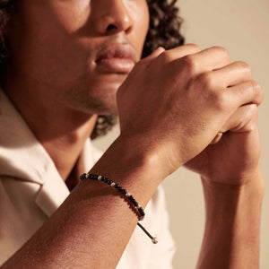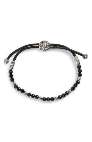 Men's Classic Chain Silver Round Beads Pull Through Bracelet on Black Cord with Black Onyx, Size M Adjustable to L by John Hardy.