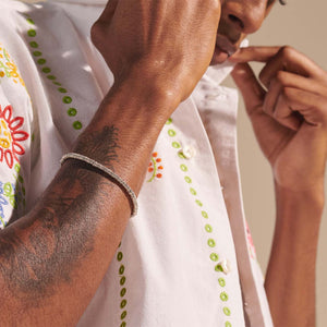 This brilliant 4mm silver round bead bracelet with classic chain rondel. Classic chain pusher clasp keeps the bracelet secure to your wrist.