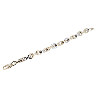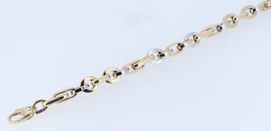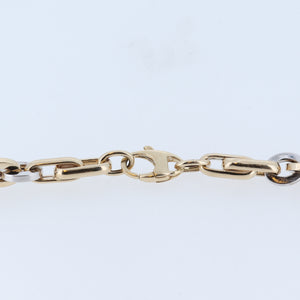 14Kt Two Tone Fancy Link Chain Alternating 2 Yellow And 1 White Gold Link, Lobster Locking Mechanism Secure And Easy To Operate And Suitable For Everyday Wear. It Weighs 11.8 Grams, Made In Italy.