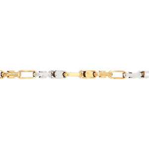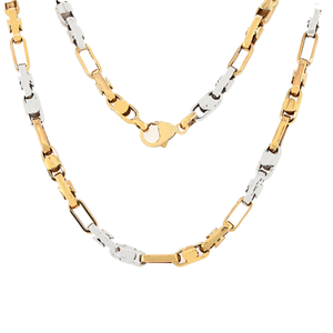 14Kt Two-Tone Fancy Link Chain, Alternating Links 3 Yellow/2 White And A Flat Button Link Embedded In High Polish Gold To Each Link For A Elegant Chain, Lobster Lock For Easy And Secure Operation. It Weighs 18.5 Grams, Made In Italy.