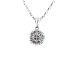 This Lovely Pendant, Crafted From 14K White Gold, Instantly Catches The Eye With Its Elegant Design. It Features A Halo Of Brilliant Diamond Accents That Encircle The Center Cluster Diamonds, With A Matching Diamond Accent Bale That Adds To Its Brilliance. The Diamonds Are 0.75 Carat Of Near Colorless Diamonds With Si Clarity.