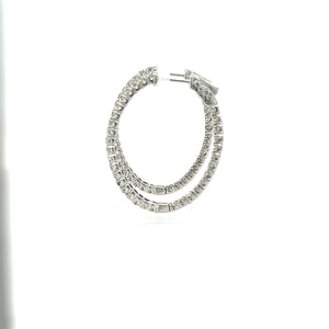 These Eternity Hinged Hoop Earrings, Designed In 14K White Gold Look Splendid From Every Angle. The Prong Set Round Diamonds Adorn The Outside As Well As The Inside Of These Hoops For Breathtaking Allure. Total Of 2.00 Carats Of Near Colorless G-H Color Diamonds With Si1 Clarity.