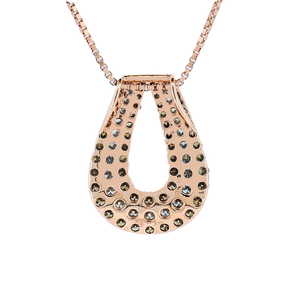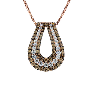 14Kt Rose Gold Choco Diamond Pendant Featuring Two Rows Of Natural Fancy "Choco" Diamonds, With A Center Row Of Classic White Diamonds In A Delicate Setting, The Entire Piece Is Comprised Of Round Brilliant Cut Diamonds That Are Graduating In Size As The Design Permits, The Fancy Choco Diamonds Are Set In A Shared Prong Setting Using Black Gold To Bring Out Their Natural Color, While The Traditional White Diamonds Are Set In Rose Gold Creating A Great Contrast With The Natural Fancy Color Diamonds. The Color Diamonds Are Graded As Natural Fancy In Color And Are Vs-Si In Clarity, The Traditional White Diamonds Are Graded As F-G In Color With Vs-Si In Clarity. The Fancy Choco Diamonds Are A Total Of 56 Individual Stones For A Total Of 1.88 Carat, The Traditional White Diamonds Are A Total Of 25 Individual Stones For A Total Of 1.05 Carat.
