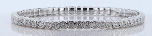 18Kt White Gold Stretchable Diamond Bracelet With 2.43Ct Diamonds Set In A Individual White Gold Basket With 56 Diamonds In Total. This Is Our Patented Technology As The Bracelet Is Very Flexible And Its Easy To Slide On And Off The Wrist With No Clasp. The Diamonds Are F-G In Color And VVS2-VS1 Clarity.