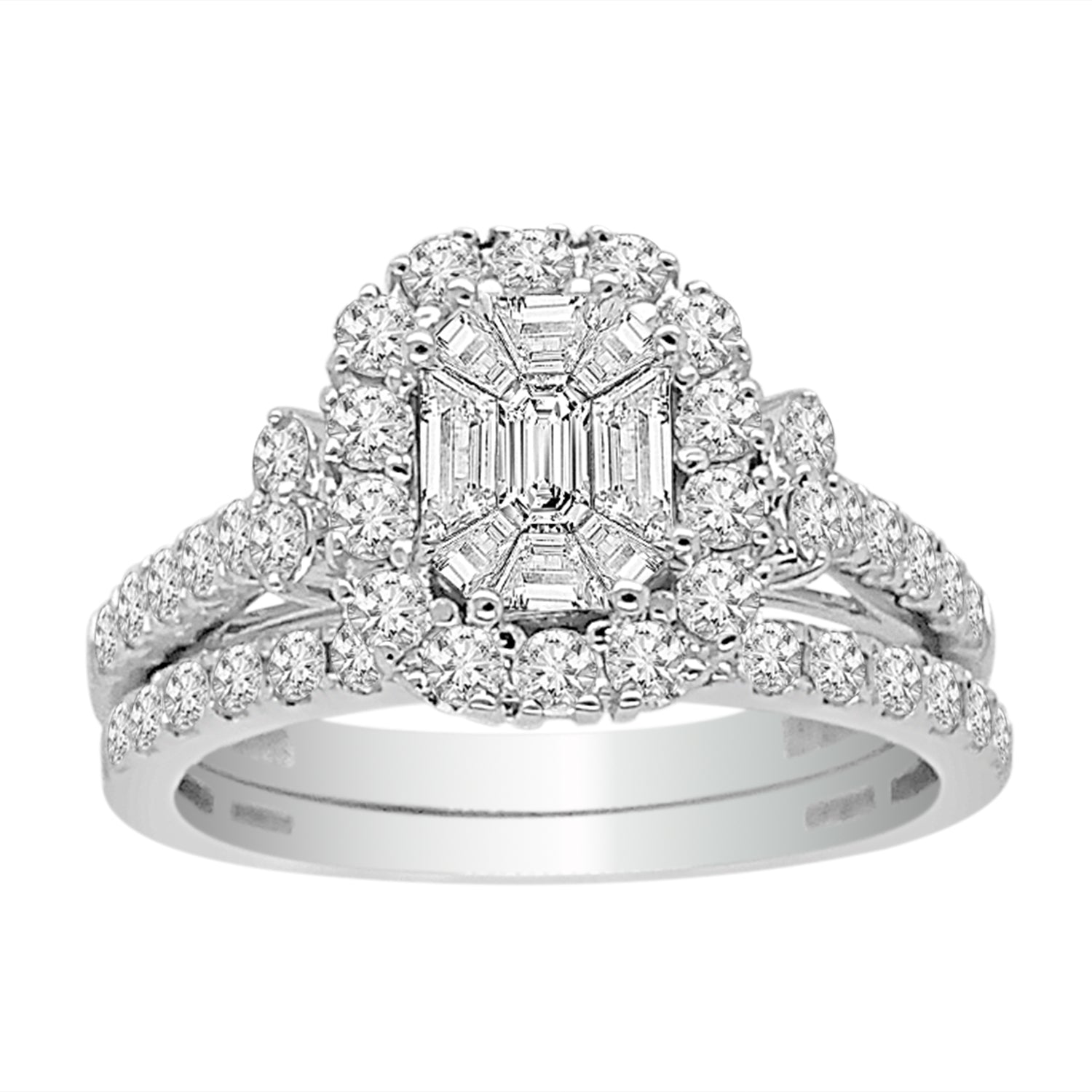 Fashion Halo Bridal Diamond Ring with Matching Band made in 18k White gold (Total diamond weight 1 1/4 carat)