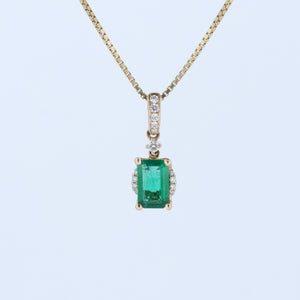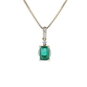 14kt Yellow Gold Emerald Diamond Pendant with .56cts of Emerald and .06cts of Diamonds