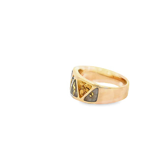 This exceptional ring features a radiant 14k yellow gold composition with natural gold quartz and nuggets, meticulously crafted into a refined band design. The ring showcases 0.20ct of brilliant round cut diamonds that add a touch of elegance and sophistication. This band embodies timeless style and understated luxury.