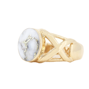 14KT Yellow Gold Men's Natural Gold Quartz ring, featuring one oval shaped gold quartz gemstone in a unique "X" pattern. It gives this classic bezel ring a design that is sure to impress. The Oval gold quartz bezel measures 12.35mmX11.15mm and it's shank measures 3.7mm wide.