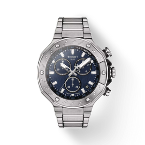 The Tissot T-Race Chronograph (Serial No.: T141.417.11.041.00) is a striking timepiece that seamlessly combines sportiness with sophistication. With its bold 45mm stainless steel case and black dial, the T-Race Chronograph exudes an energetic, high-performance aesthetic. The watch features a chronograph function with three sub-dials, allowing precise time tracking, while the tachymeter scale on the bezel makes it perfect for measuring speed over distance. Powered by Swiss quartz movement, it ensures accurate and reliable timekeeping. The T-Race Chronograph is also equipped with a scratch-resistant sapphire crystal and water resistance of up to 100 meters, making it suitable for both daily wear and aquatic activities.