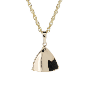 Natural Gold Quartz and Natural Gold Nugget Pendant, Triangular shaped gold quartz gemstone (7.5mmX7.8mm) surrounded by a cluster of natural gold nuggets with a V shaped bail in high polish gold.