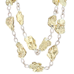 This necklace offers a sophisticated and natural aesthetic, perfect for those who appreciate both elegance and the raw beauty of gold nuggets.