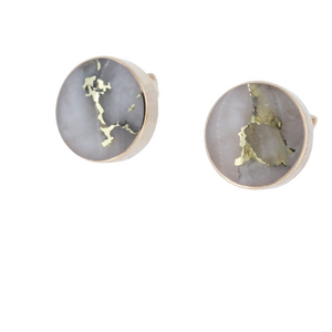 14kt Yellow Gold natural gold quartz studs consisting of 2 round gold quartz gemstones that are 8mm each in a bezel setting.