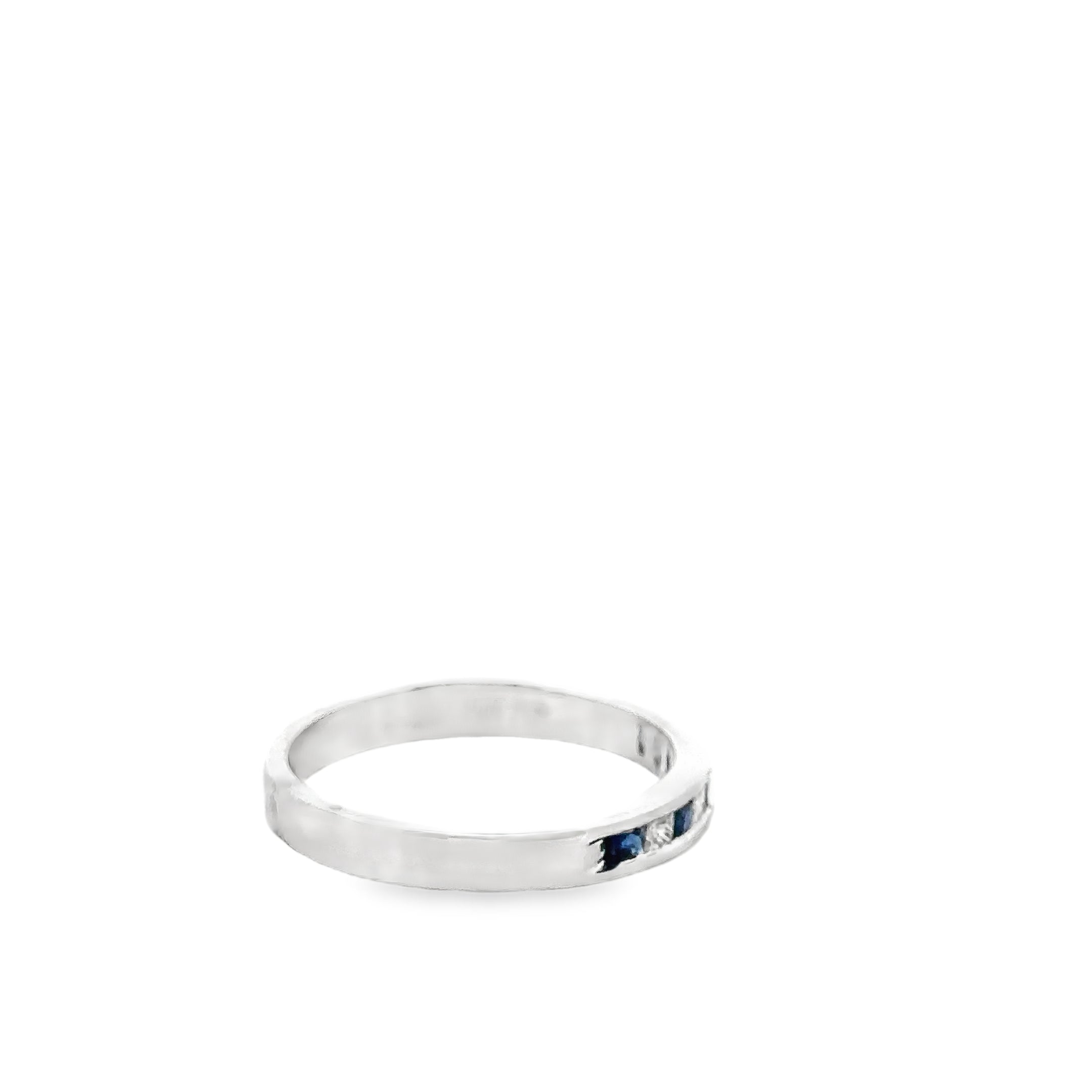Experience timeless elegance with this 14k white gold band. Featuring 0.22ct of sapphires with a vivid blue hue, this ring embodies classic sophistication. Its seamless design and exquisite craftsmanship enhanced with 0.17ct of brilliant diamonds make it a perfect symbol of enduring love and style.