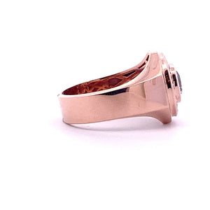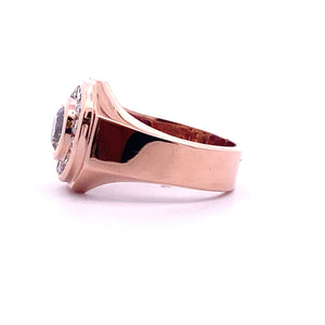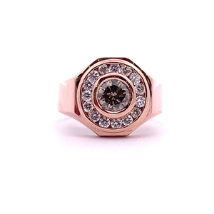 | Exude sophistication with this distinguished diamond ring, expertly crafted in 14k rose gold. At its heart lies a 0.94ct round-cut, fancy brown diamond. This captivating gemstone is elegantly framed by 0.60ct of white diamonds, creating a harmonious blend of color and sparkle. A bold statement piece that effortlessly combines luxury and modern design. |