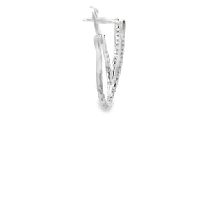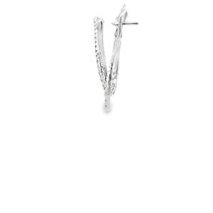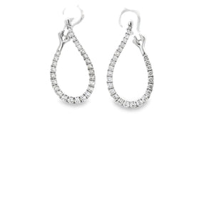 | Embrace timeless elegance with these unique 14k white gold earrings. The earrings feature 0.88ct round-cut diamonds, set within unique curved settings. Perfect for adding timeless elegance to any collection. |
