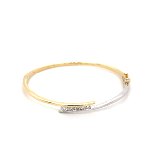 | Elevate your style with this chic bangle bracelet, expertly crafted in radiant 14k yellow and white gold. The sleek design features a 0.50ct row of white diamonds. Perfect for adding a subtle statement to any ensemble. |