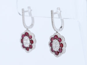 14Kt White Gold Ruby And Diamond Earrings, Total Of 16 Natural Oval Rubies, On The Outer Circumference Of The Rubies Are Round Brilliant Cut Diamonds In A Micro Pave Setting For A Seamless Smooth To The Finger Feel. On The Inside Circumference Of The Rubies Are Larger Diamonds That Are Invisible Set With Smaller Round Diamonds, Self Incorporated In The Design Are Diamond Huggies As Backs With Round Brilliant Cut Diamonds For Added Comfort With Push To Close Lock. Total Of 4.19 Carats Of Rubies And 0.89 Carats Of Round Diamonds That Are Graded As F-G In Color And Vs2-Si1 In Clarity.