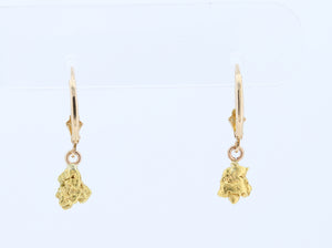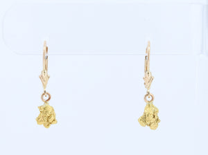 14KT Natural Gold Nugget Earrings, containing two gold nuggets, and soldered with a jump ring on stable lever backs. These are some of the most secure backs as they have a spring locking mechanism, that is easy to operate with minimal effort, the backs are in high polish yellow gold. Total weight is 1.92 grams