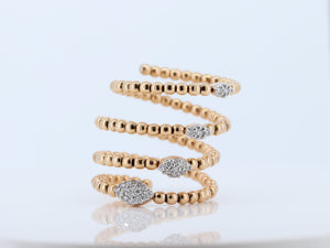 18Kt Rose Gold Diamond Ring, Featuring Round Brilliant Cut Diamonds In White Gold, The Swirl Ring, Itself Is A Flex Ring And Can Fit Most Finger Sizes Without The Need For Sizing. The Diamonds Are Graded As F-G In Color With Vs1-Vs2 In Clarity.
