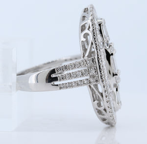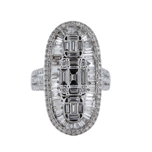 18Kt White Gold Diamond Cluster Ring, Featuring Round Brilliant Cut Diamonds In A Micro Pave Setting, Along With Step Cut Tapered Baguette Diamonds And Step Emerald Cut Diamonds, Along A Three Split Shank Containing Round Diamonds On Each Side. The Ring Measures 27Mm Face Up, And The Diamonds Are Graded As E-F In Color With Vvs2-Vs1 In Clarity.