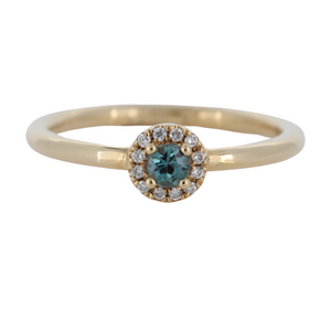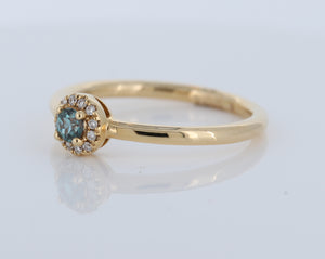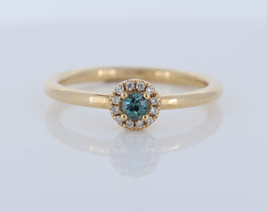 This Delicate And Dainty Ring Features A Natural Round Shape Alexandrite With A Diamond Halo And Solitaire Band. The Alexandrite Is Certified Gal Laboratory Of New York As Natural And Its Color Change As Bluish-Green In Daylight Changing To Purplish Red In Incandescent Light, Alexandrite's Are Priced For Their Ability To Change Color Naturally. Crafted In 18Kt Yellow Gold The Round Alexandrite Weighs 0.17 Carat With 0.05 Carats Of Surrounding Round Diamonds That Are Graded As G-H Color With Vs Clarity.