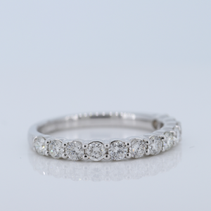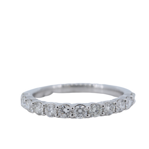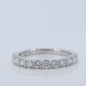 18Kt White Gold Ladies' Diamond Band In A Four Shared Prong Setting. Total Of 12 Round Brilliant Cut Diamonds For A Total Of 0.80 Carats. The Diamonds Are F-G In Color With Vs2-Si1 In Clarity, Each Diamond Measures 2.5Mm.